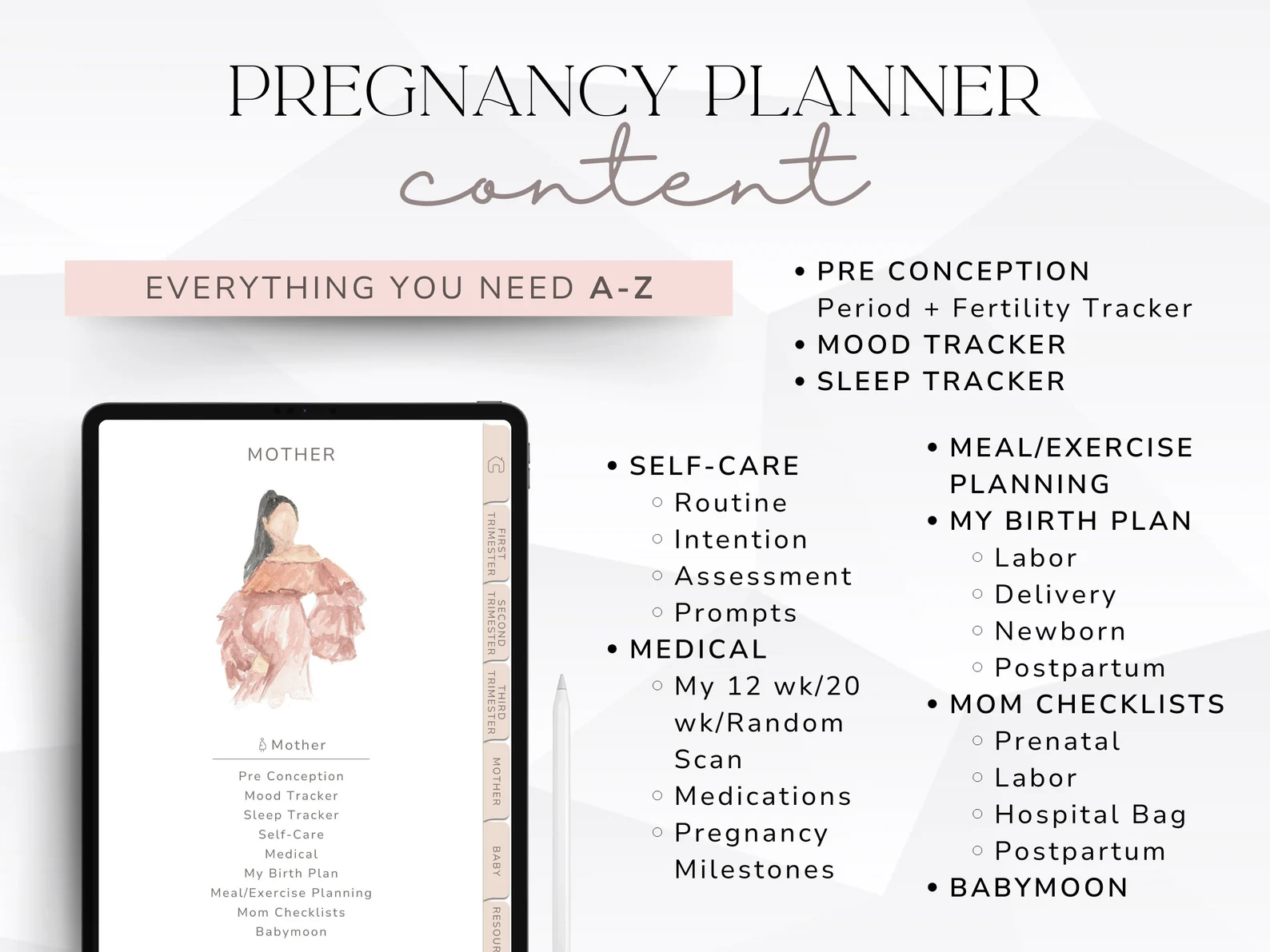 - Expert Guidance: Created by a postpartum nurse (From preconception to postpartum).