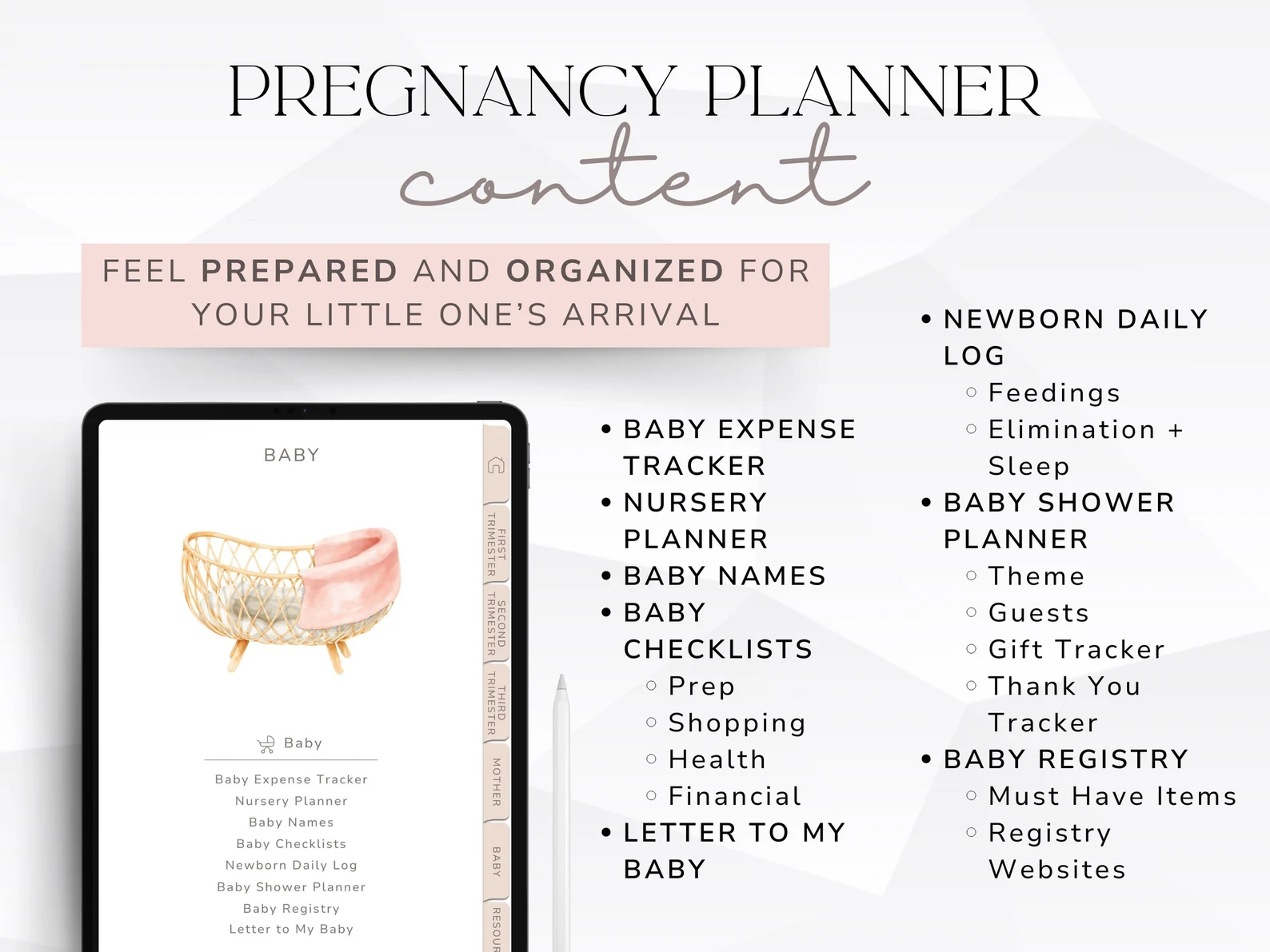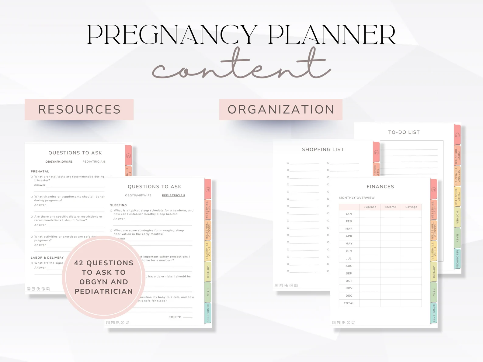 - Content: Mom & Baby Checklists, Trackers, Templates, and much more.